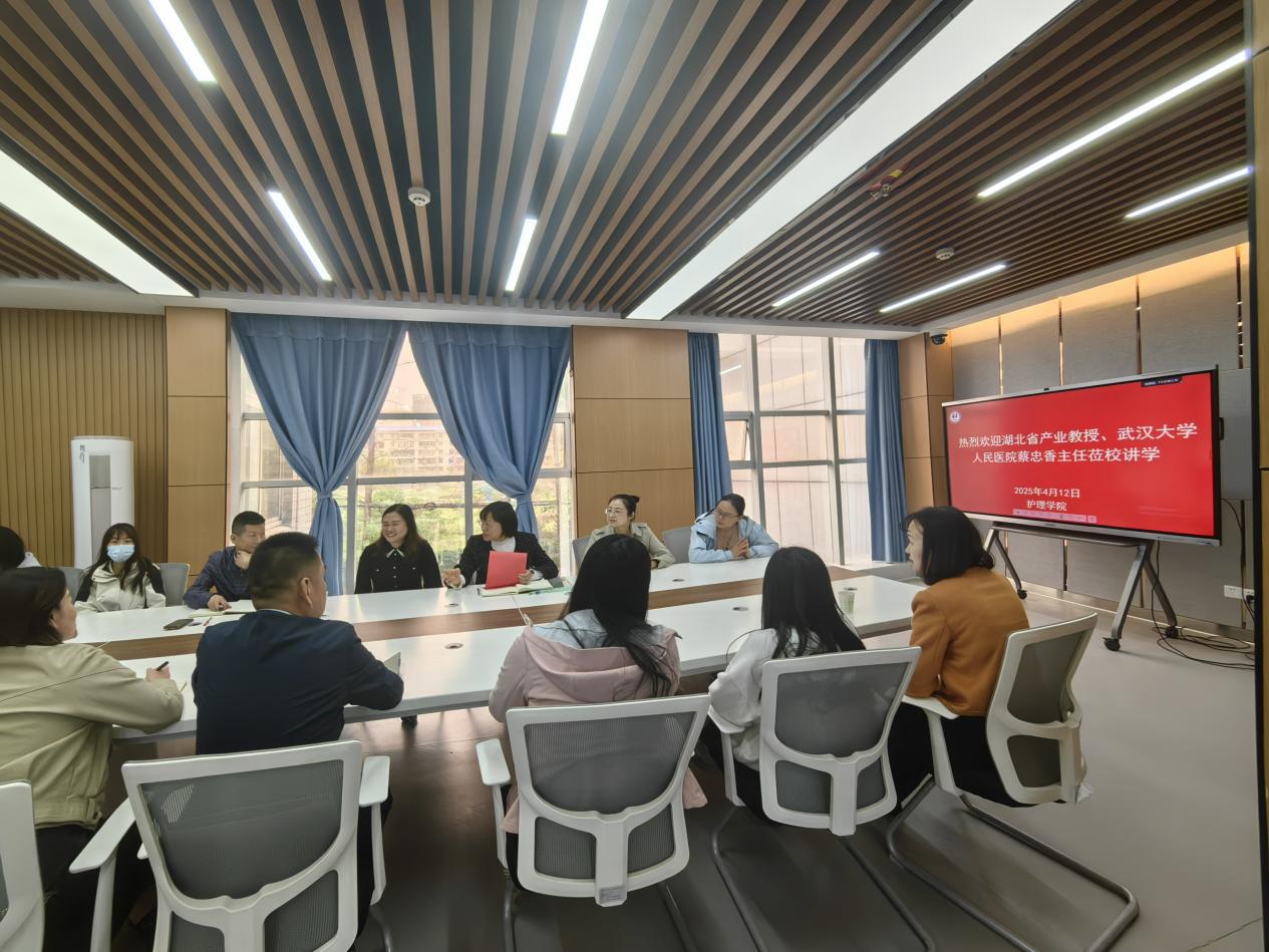 (本网讯 鞠珊)4月12日,湖北省产业教授、武汉大学人民医院护理部主任蔡忠香博士应邀来校,为湖北省新时代名师培养对象张玉洁工作室、湖北省高校“双带头人”教师党支部书记田樱工作室开展专题培训。本次培训的主题为“教师科研能力跃升路径”,护理学院班子成员、两个工作室核心成员、骨干教师代表等参加了培训。护理学院院长杨桂荣主持培训会议。
