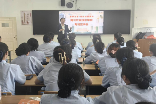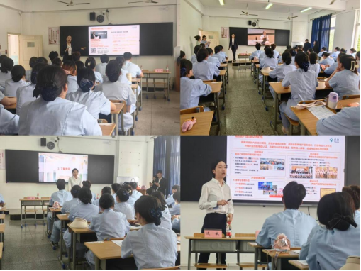 (本网讯:镇雪婷)深化产教融合,赋能养老人才培养。4月17日下午,泰康之家–楚园养老服务有限公司人力资源总监张曼丽一行三人来校开展第二届“泰康班”选拔活动。护理学院党总支副书记何顺畅、辅导员蓝勇福及2023级智慧健康养老服务与管理专业全体学生参加了宣讲会,护理学院副院长张玉洁主持宣讲会。