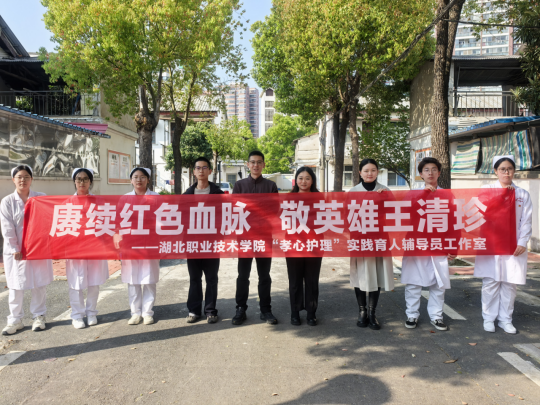 (本网讯:唐凌霎、胡孝仲、黄李想)为深入传承红色基因,弘扬伟大上甘岭精神,厚植青年学子家国情怀与医者担当,2026年4月1日下午3时,湖北职业技术学院护理学院“孝心护理”辅导员工作室主持人唐凌霎,带领辅导员武梦欣、胡孝仲及“孝心护理”志愿服务队6名志愿者代表,专程前往上甘岭战役英雄、电影《上甘岭》中卫生员王兰原型王清珍老人旧居,开展“寻迹英雄故里,践行医者初心”红色教育实践活动。师生们在踏寻红色足迹中感悟英雄精神,在聆听英雄事迹中汲取奋进力量,切实将红色精神融入护理专业学习与志愿服务实践中。