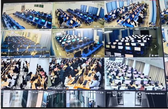 考试全程展现多部门协同的育人合力。护理学院主导命题与考务组织,学校教务处协同质量监督与过程巡视,计算机实训中心依托监控系统实现各机房画面的实时调度与回溯。从文华楼机房内学生专注答题的场景,到监控大屏上各考场的动态呈现,“学生答题-教师巡视-系统监控”的全链条管理,既保障了考核公平性,又为后续教学改进提供了可视化数据支撑。