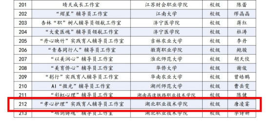 (本网讯:唐凌霎)近日,高校辅导员工作室第五批“联建共建”活动遴选结果揭晓。“孝心护理”实践育人辅导员工作室成功入选。这标志着工作室实践育人模式与团队建设成果获得国家级平台充分肯定。