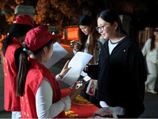 活动现场,志愿者精心布置了百余条字谜,以生活常识、传统典故、中秋相关内容为核心,不仅富含解谜乐趣,更承载文化内涵。过往的同学们纷纷踊跃尝试,于凝神思索与热烈研讨间破解谜题,志愿者们则在旁耐心引导、热情讲解,与大家一同探讨谜面深意,现场讨论声、解惑声与欢笑声交织,互动频繁不断,热烈的氛围中更添几分中秋的温馨与文化的厚重。