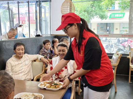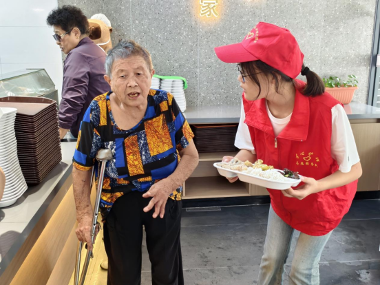 活动当天,“孝心护理”的志愿者们在老师和社区工作人员的指导下严格按照服务流程开展工作。在餐食供应环节,志愿者们提前与食堂工作人员对接,明确当日餐品的营养构成与适老特点,随后在取餐区有序完成餐食分配,确保每份餐食的分量、搭配均符合老年群体饮食需求。在餐食递送与用餐服务环节,同学们秉持护理专业的细致服务标准,主动询问老人用餐偏好,及时响应老人用餐过程中的各类需求,从递餐时的轻柔动作,到交流时的温暖话语,无不彰显着他们的专业与温情。用餐结束后,社区老人对此次服务给予高度认可,多位老人反馈,志愿者的服务“专业且贴心,让用餐过程充满暖意”。