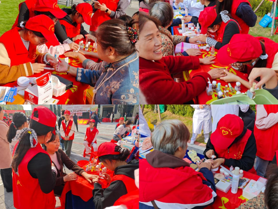 在活动现场,志愿者们全程在岗,分工协作,保障活动顺利开展。活动中,针对行动不便的老年群体,志愿者始终保持高度关注。见老人脚步稍缓,便立即上前轻柔搀扶,主动协助拿取物品,并引导其有序排队,用细致动作化解老人们的不便。待老人们落座后,志愿者便拿出工具,精准细致地为他们测量血压、血糖,并结合实时数据询问身体状况,耐心叮嘱注意事项。与此同时,“爱心妆扮”服务也并为现场增添了诸多温馨画面,志愿者细致询问阿姨们的要求,根据她们的脸型与气质,耐心地为她们描眉化妆;美甲环节中,志愿者也依据个人喜好挑选颜色、搭配样式,力求呈现最佳效果。当阿姨们透过镜子看到焕然一新的自己时,纷纷露出满意的笑容,由衷感谢志愿者帮助她们重拾青春光彩,为现场增添了温馨与感动。