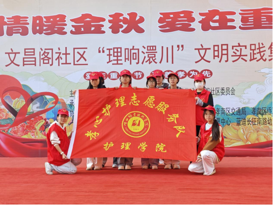(本网讯 刘宇欣 徐晨曦)金秋送爽,丹桂飘香。为弘扬中华传统美德尊老敬老的传统美德,10月28日,湖北职业技术学院“孝心护理”实践育人辅导员工作室带领“孝心护理”、“护你平安”应急救护、“致美尽孝”志愿服务队共12名志愿者联合湖北省孝感市孝南区新华街道文昌阁社区,举办了一场以“情暖金秋,爱在重阳”为主题重阳节关爱老人便民服务活动。