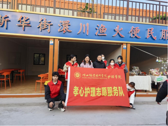 (本网讯:黄李想 史文秀)践行志愿精神,传递温暖力量,2025年12月19日下午4:30,在孝感市新华街道文昌阁社区的带领下,湖北职业技术学院“孝心护理”实践育人辅导员工作室组织“孝心护理”志愿服务队、“致美尽孝”志愿服务队共计10余名志愿者在“澴川渔火”夜市开展公益集市活动,将专业、暖心的美学与健康服务直接送达居民身边。