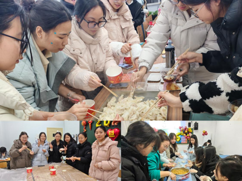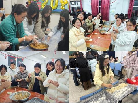 活动现场洋溢着浓厚的节日氛围,鲜艳的红彩带与缤纷的气球相映成趣,将教室装点得热闹非凡。桌台上饺子皮、馅料等食材工具一应俱全,同学们围站在桌旁,分工协作、默契配合。手法娴熟的同学快速擀皮、巧手包馅,捏出的饺子个个圆润饱满。而初次上手的同学则在同伴的指点下逐步尝试,即便包出的饺子模样不一,却都饱含着真挚的心意。各班辅导员老师也走进教室参与其中,与同学们一同体验包饺子的乐趣。辅导员老师们穿梭在同学之间,耐心示范擀皮、捏褶的技巧,手把手指导大家包出形态规整的饺子,同时还与同学们亲切交谈,欢声笑语不时回荡在现场。待饺子煮制完成,同学们齐聚食堂分享这份劳动成果,争相品尝亲手包制的饺子,同时李颖老师也与大家围坐一堂,共同品尝这份暖心的美味,此刻温馨的画面尽显同窗温情。